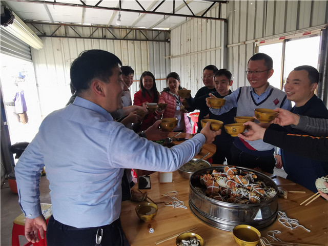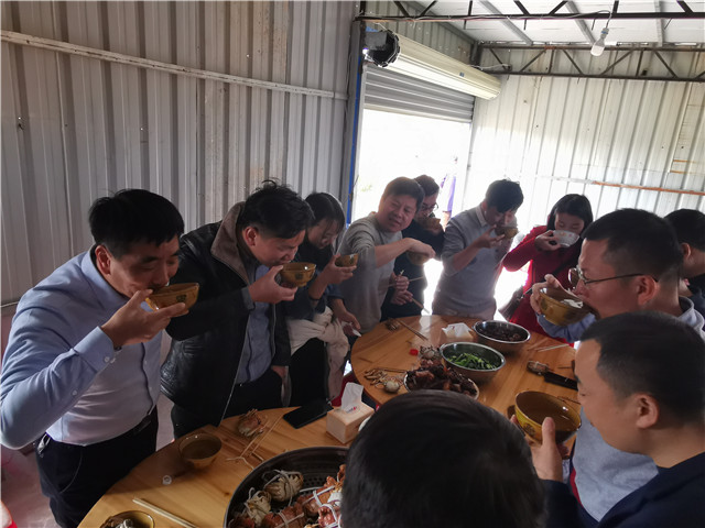 中午12點(diǎn)30分,大家一起享用美味的午餐。綠色的果蔬,配上濃郁香醇的米酒,歡樂的氣息充滿了整個(gè)房間。