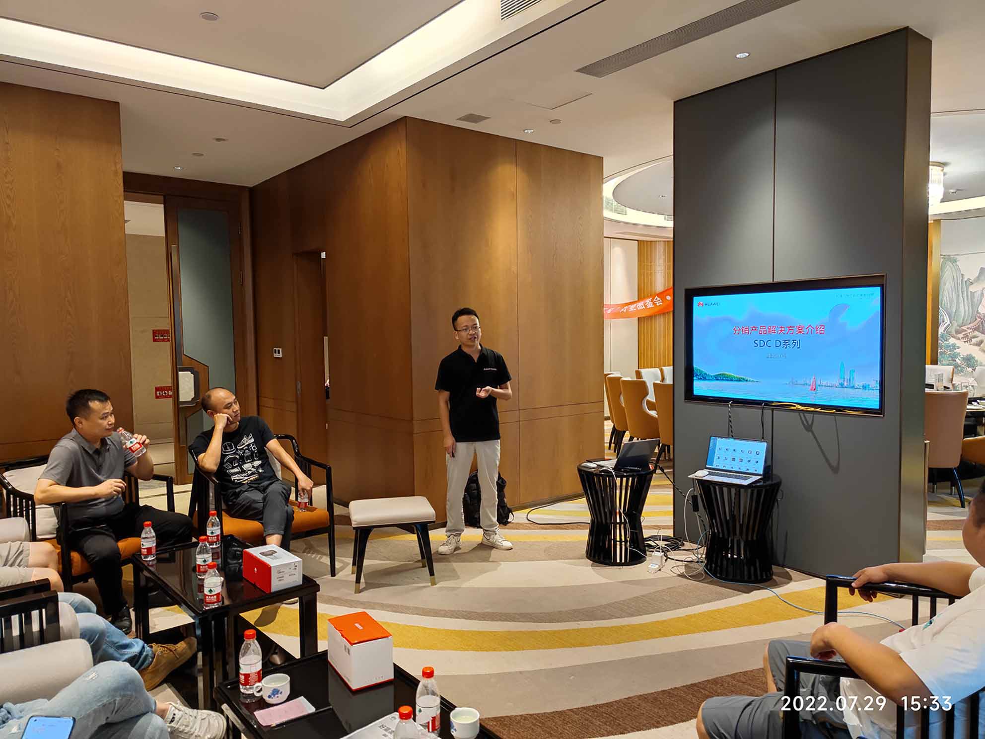 圖為南昌漢天銷售經(jīng)理羅亮為本次品鑒會(huì)演講。