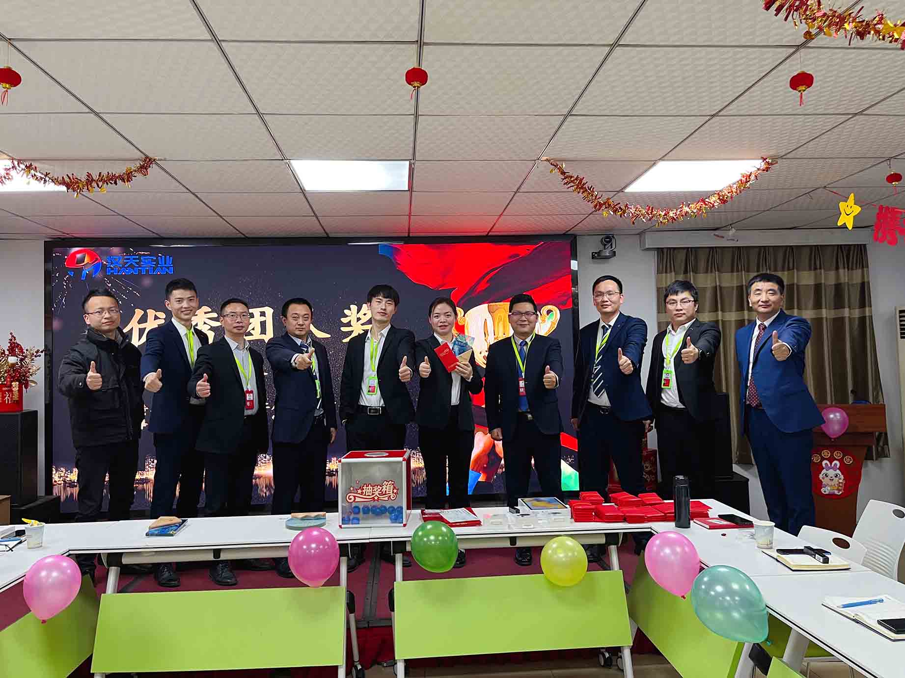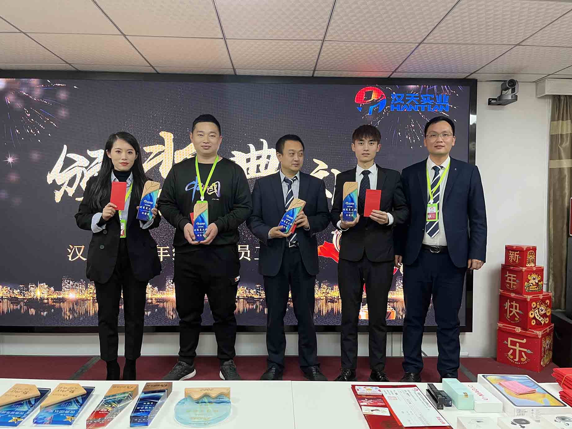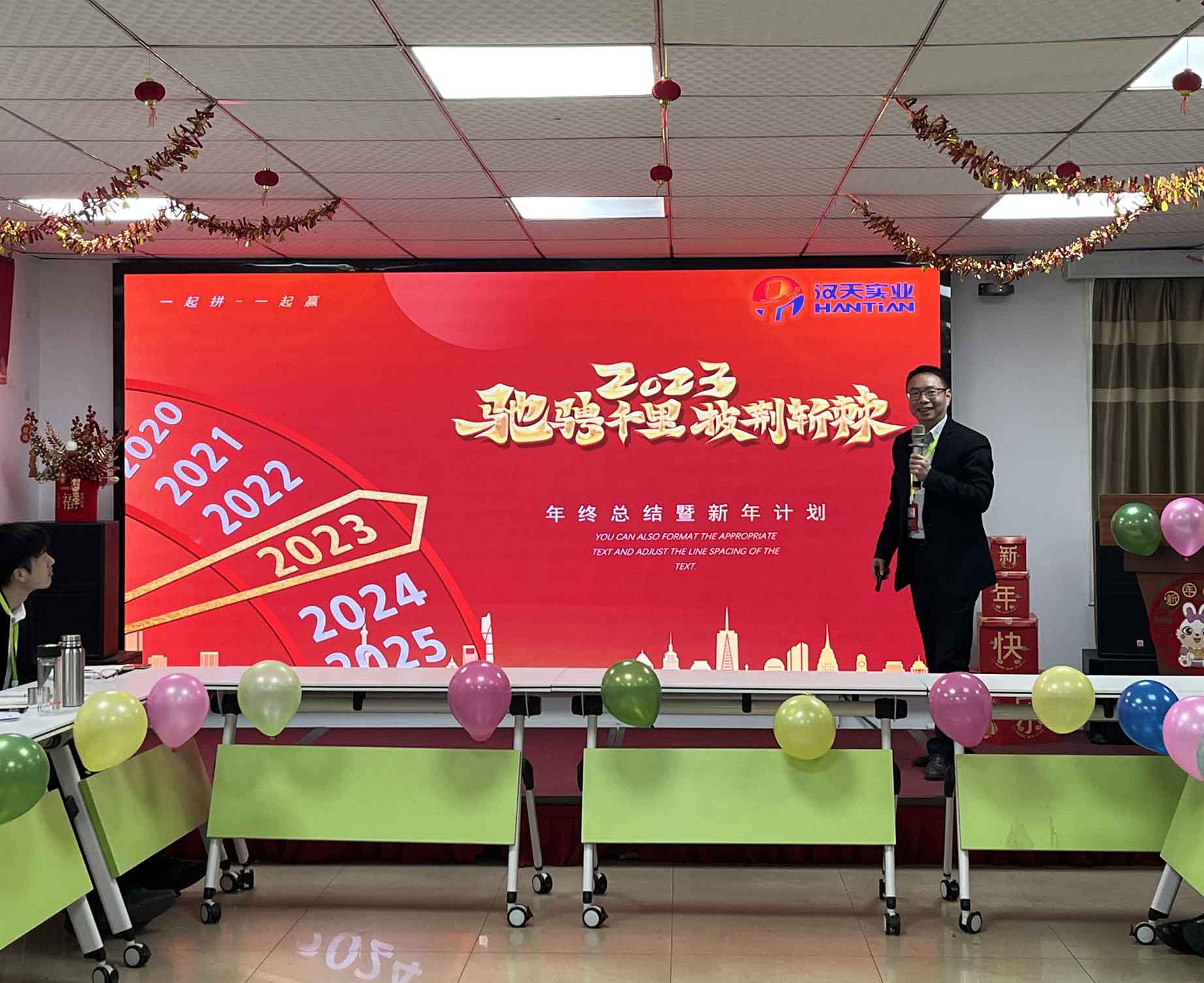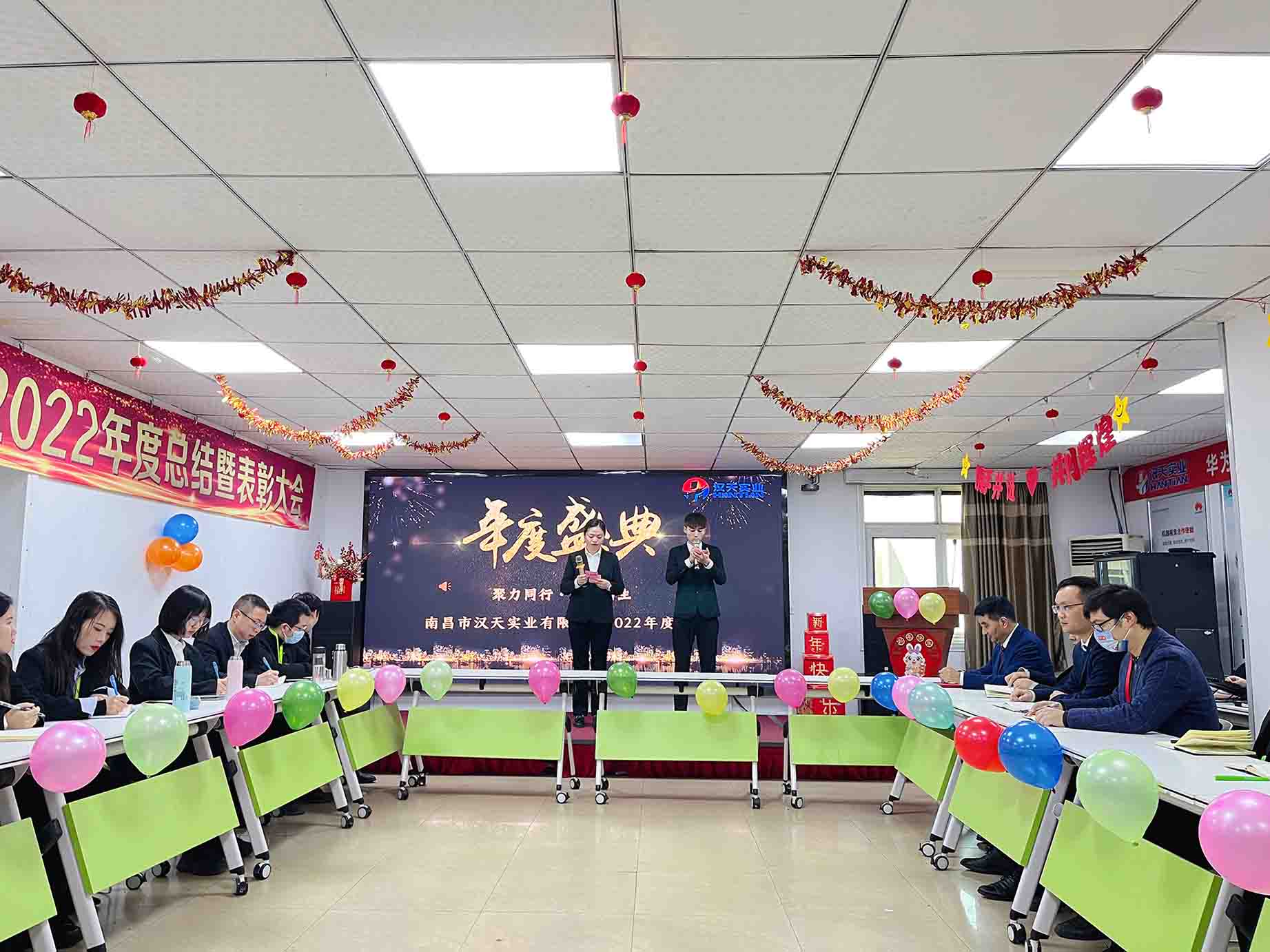 伴隨著歡聲笑語,漢天實業(yè)的員工們相聚一堂,在主持人的熱情祝福中,拉開了年終總結(jié)會的序幕。