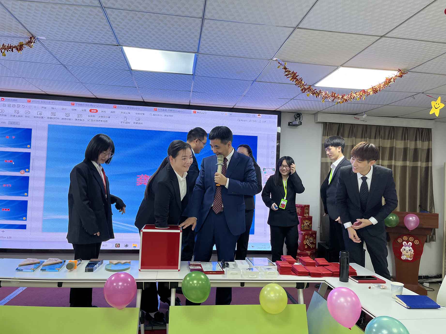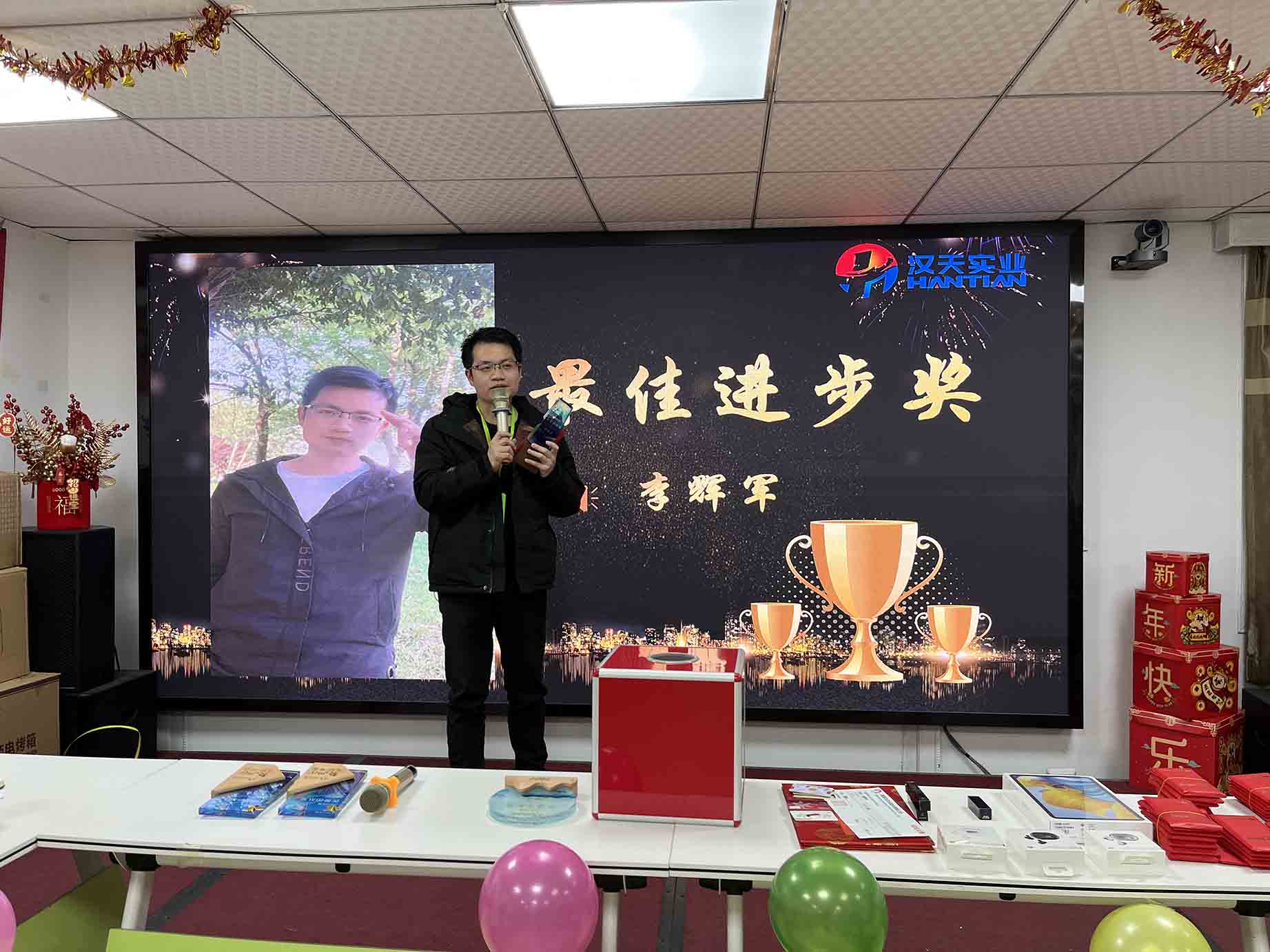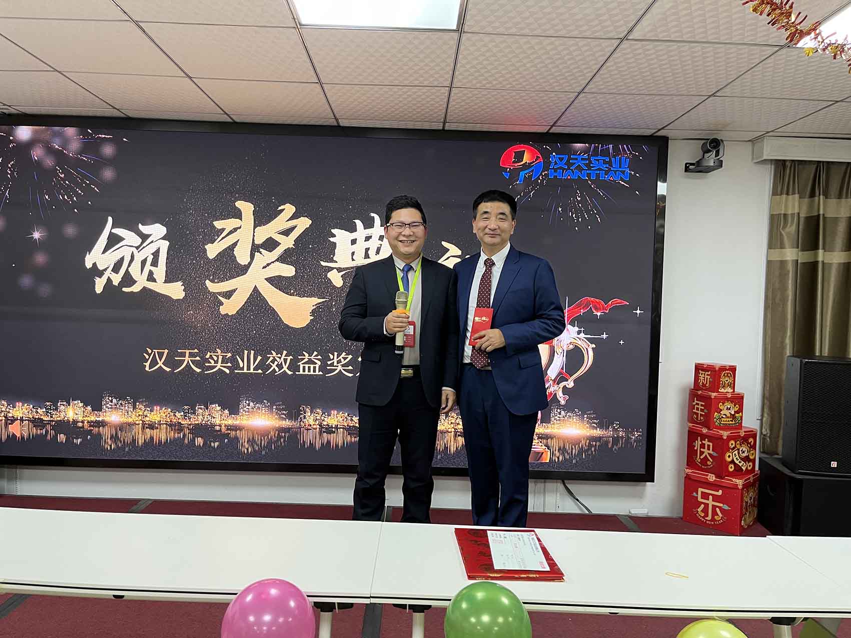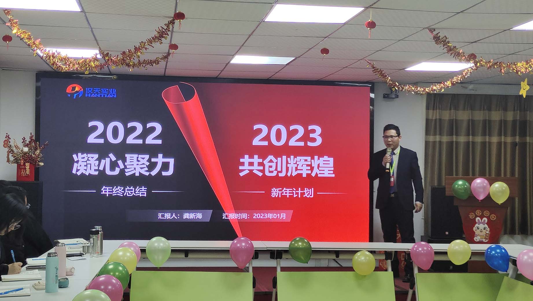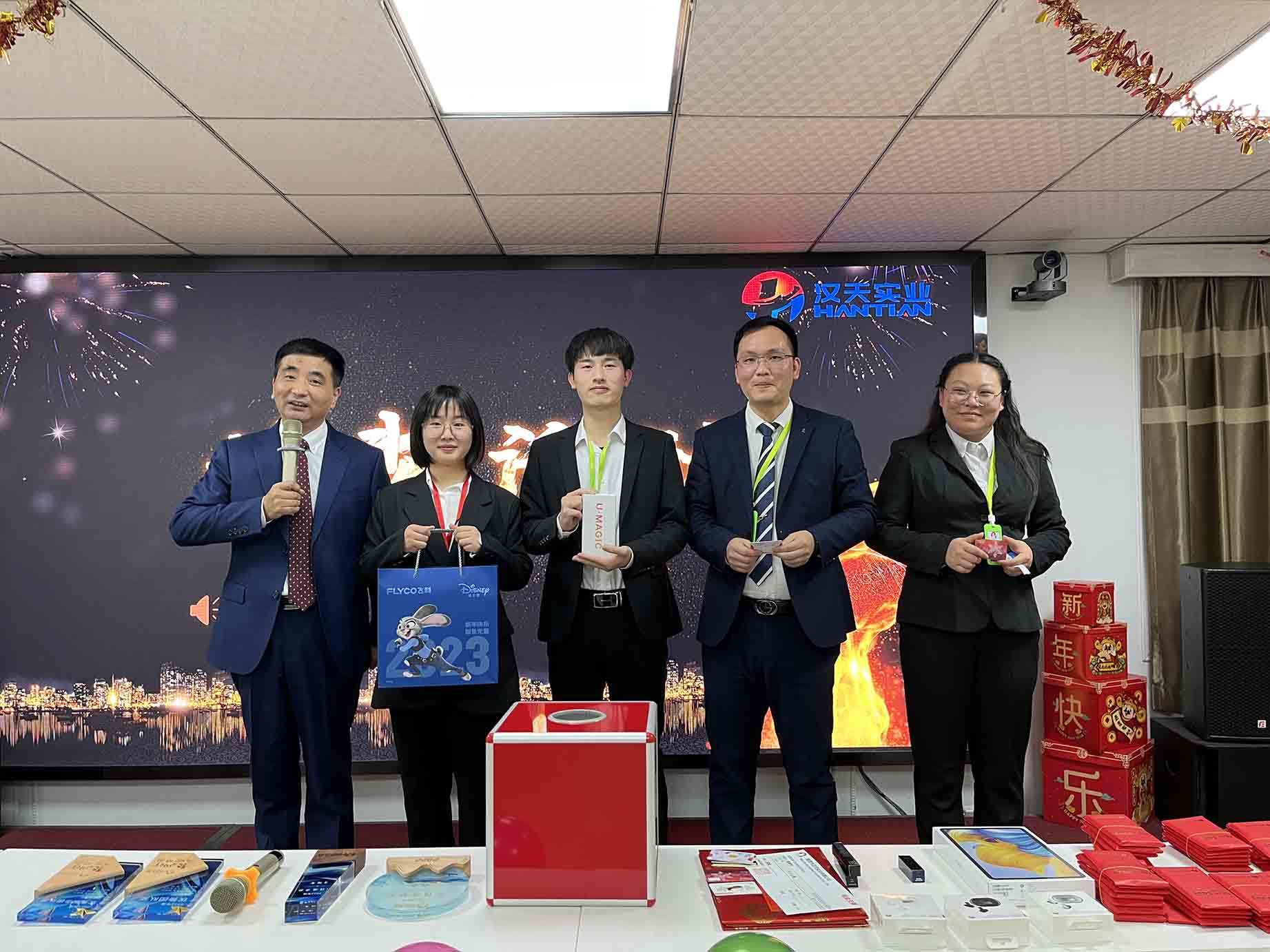 伴隨著歡聲笑語,漢天實業(yè)的員工們相聚一堂,在主持人的熱情祝福中,拉開了年終總結(jié)會的序幕。