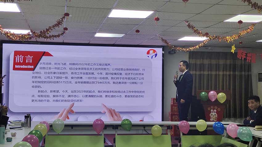 會上,漢天實業(yè)的總經(jīng)理楊總在總結(jié)講話中表示:2022年漢天人經(jīng)歷了艱苦的三年疫情斗爭,公司制定了一系列決策部署,做到守護(hù)自己,不給國家添負(fù)擔(dān),克服了一個又一個的困難,我們始終相信一切都會過去的,一切都會好起來的,因為明天便可乘風(fēng)破浪。