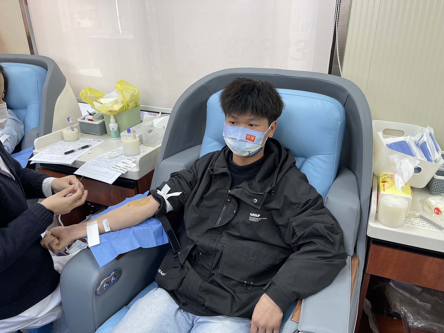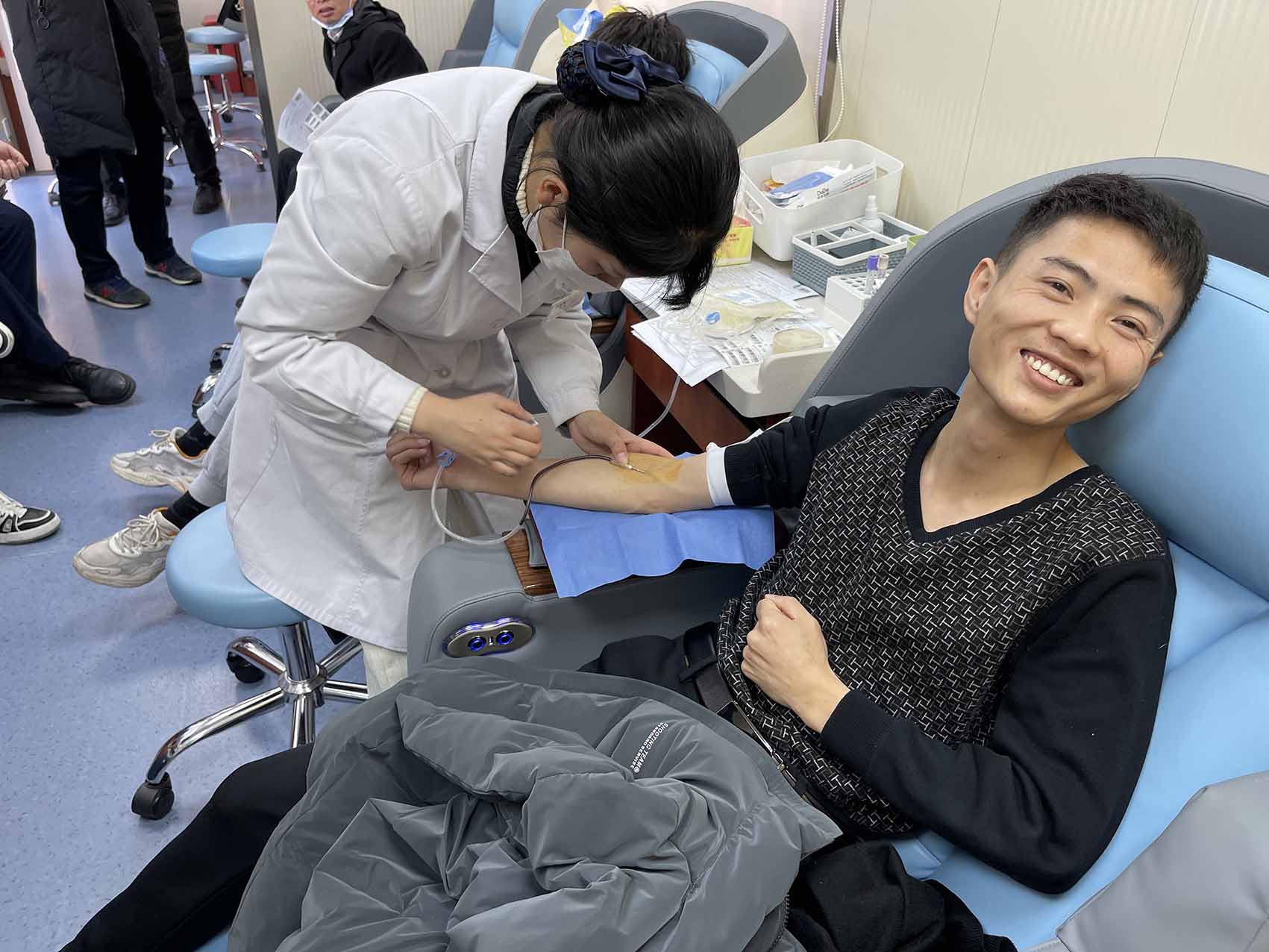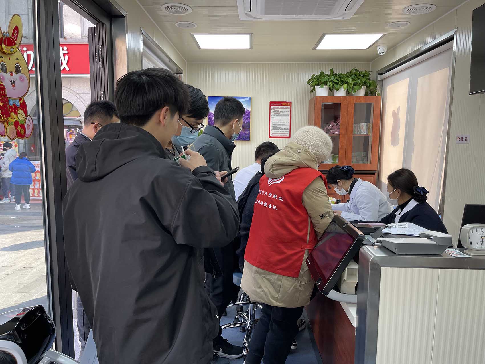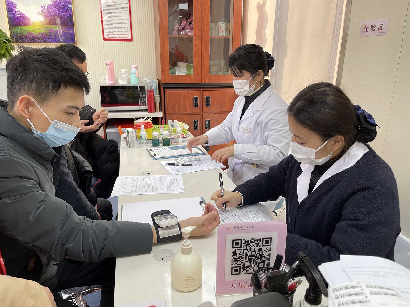 大家認(rèn)真掃碼填寫獻(xiàn)血登記表、測量血壓、初篩、獻(xiàn)血、領(lǐng)證,有條不紊、秩序井然。