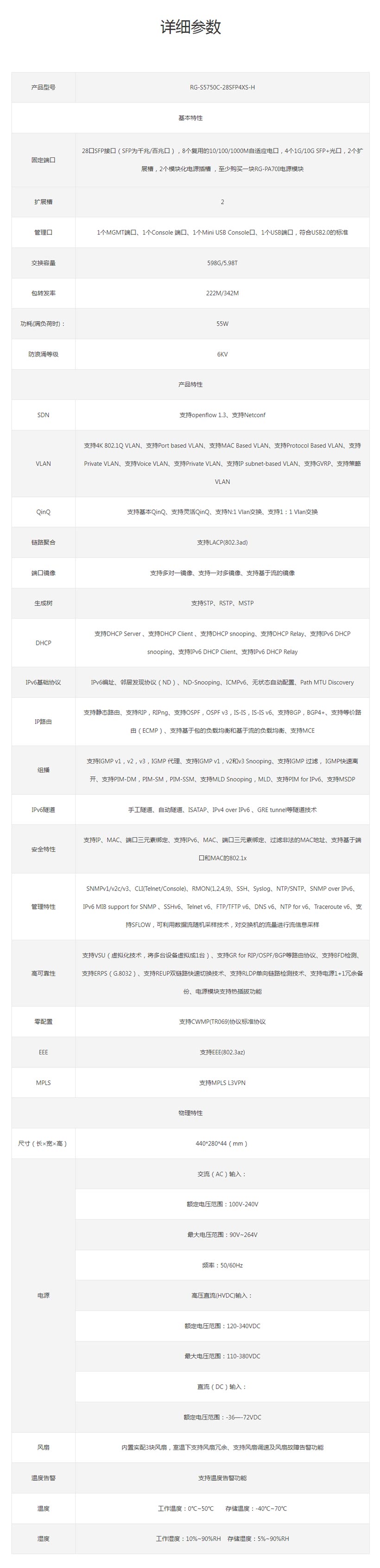 RG-S5750C-28SFP4XS-H高性能以太網交換機