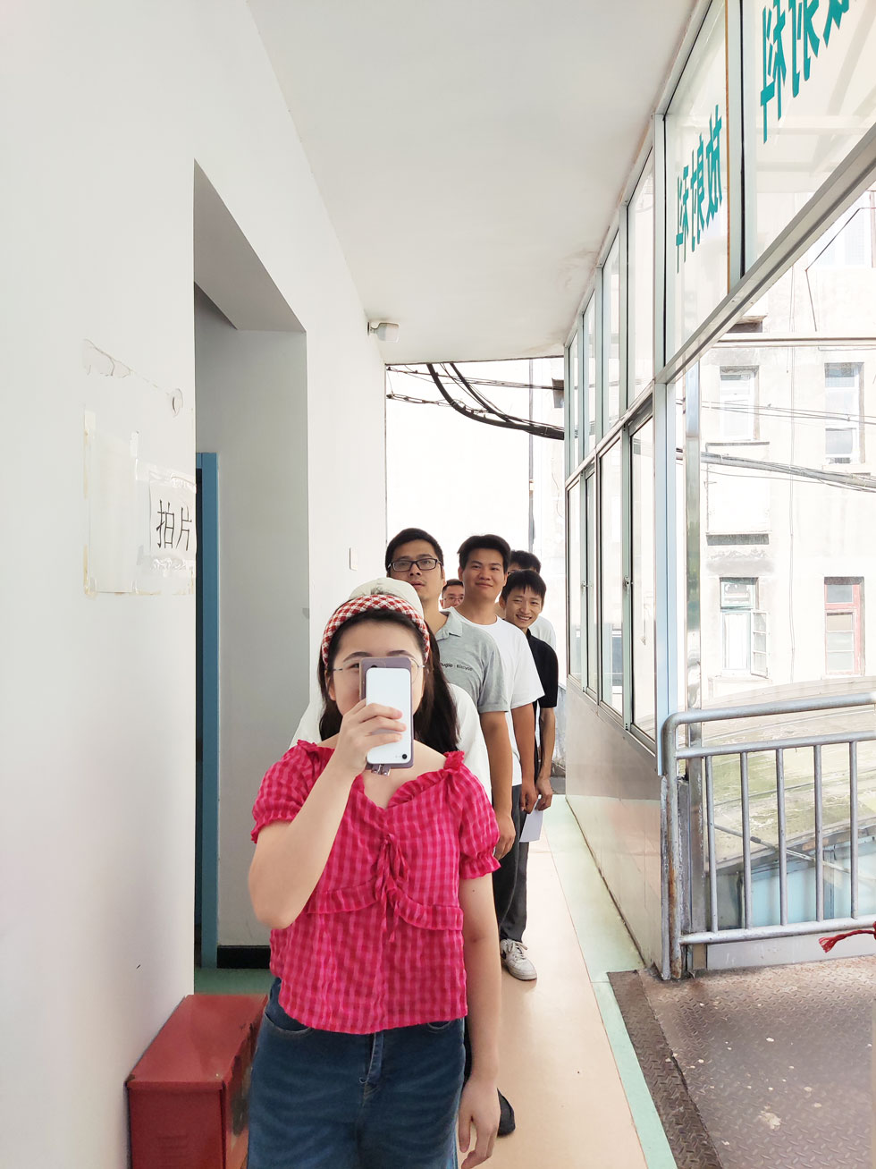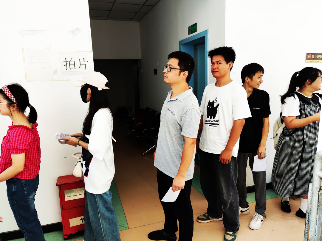 體檢現(xiàn)場大家有序排隊,領(lǐng)取體檢表格。