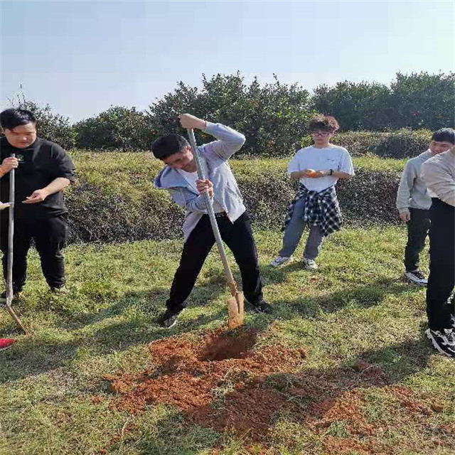 楊總教我們怎么植樹,我們每個人都種上掛有我們名牌的兩顆小樹棵,來年春天開花結果。