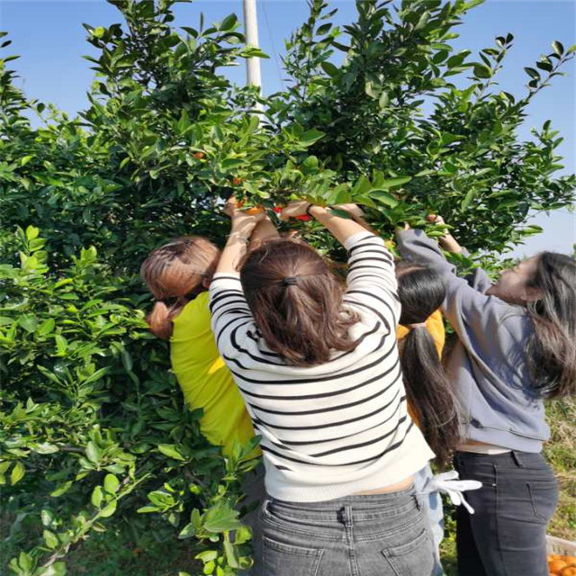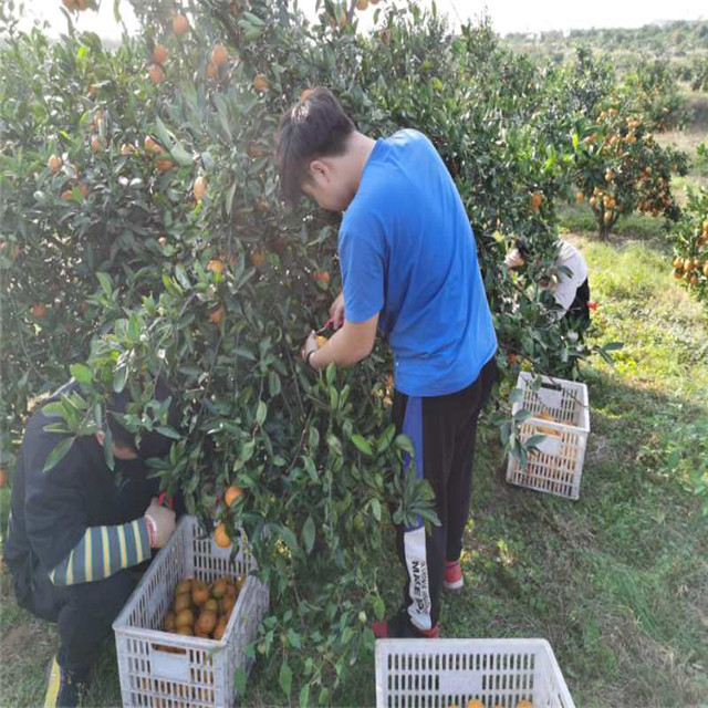 吃完飯后整理衛(wèi)生稍作休息后,我們開始了摘橘子比賽。兩兩一組,兩組PK,輸方支付贏方的橘子費用。看,我們摘的多賣勁,激起我們的斗志了。