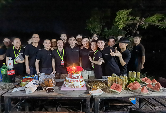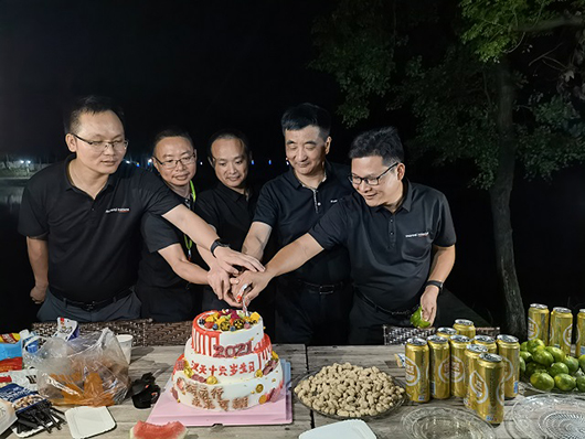 晚上我們滿心歡喜地慶祝了漢天實(shí)業(yè)十六歲生日,各位股東及楊總一起聯(lián)手切蛋糕!