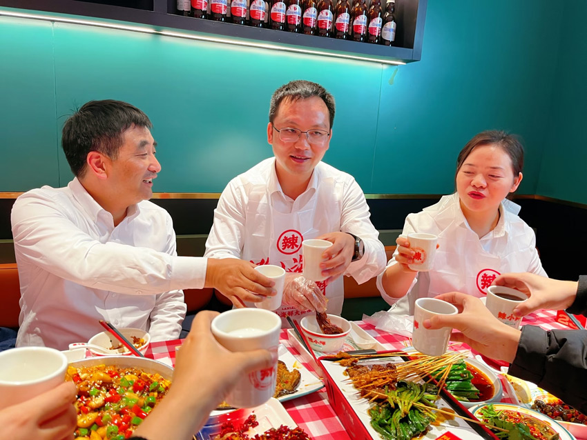 就餐開始,大家輪番敬酒。杯酒之情,一切盡在不言中。這里有最親切的領導,最可愛的同事,最可口的佳肴,最溫暖的漢天大家庭。聚餐期間,大家都放下了日常工作的嚴肅,就平日工作中遇到的趣事、煩惱相互交流,有說有笑,餐廳中充滿了歡聲笑語。